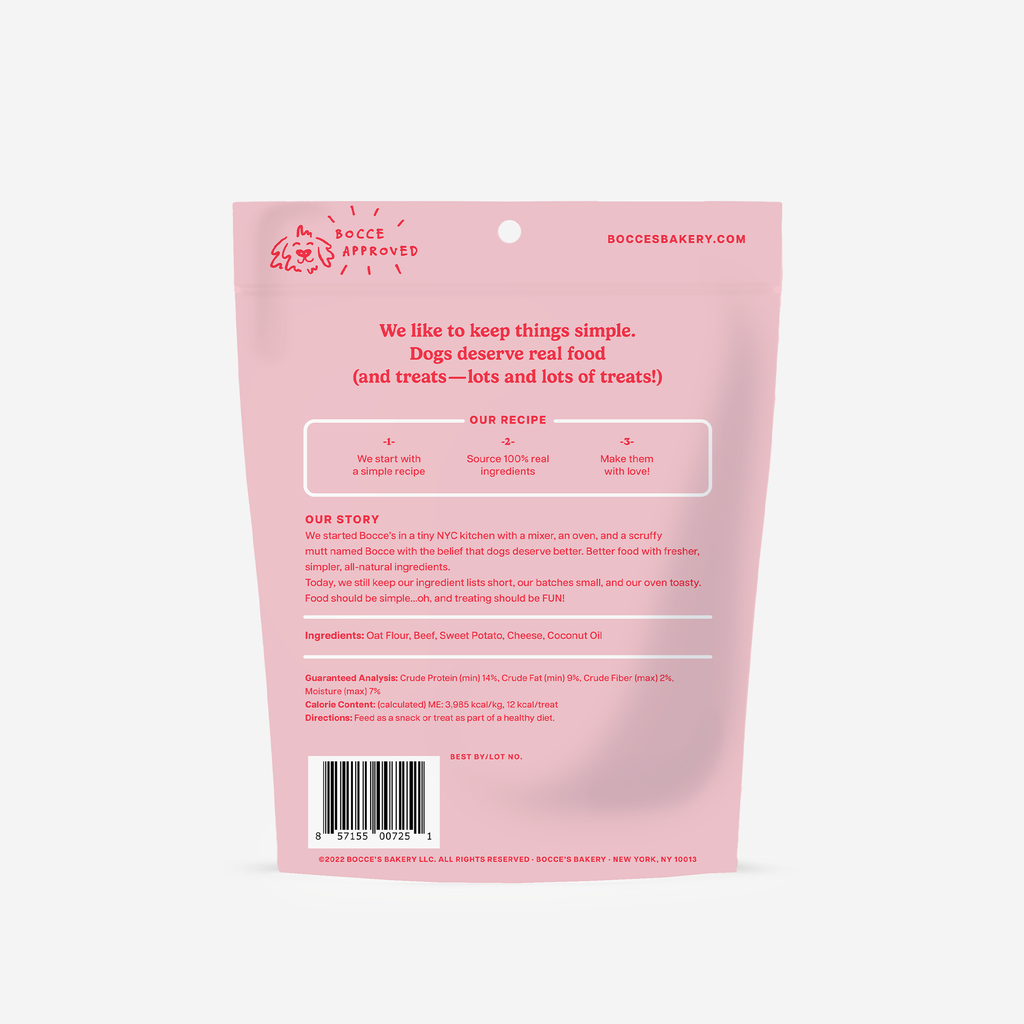 Ingredients: Oat Flour, Beef, Cheese, Sweet Potato