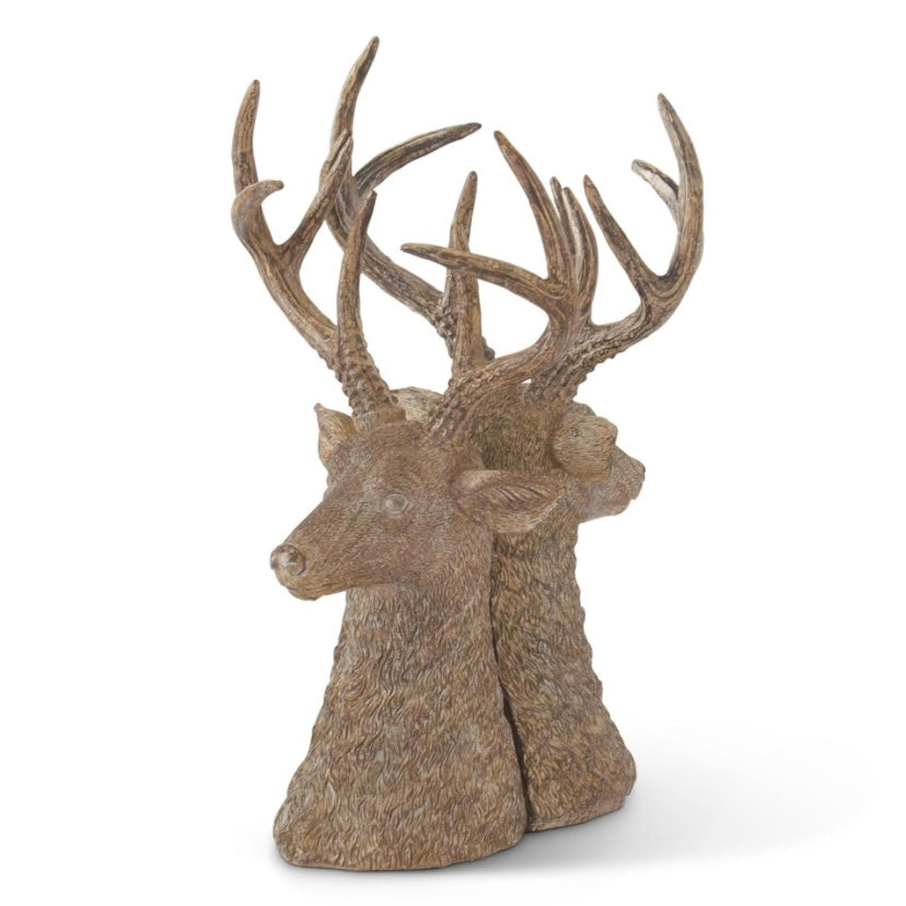 SET OF 2 11.75 INCH TAN RESIN DEER BUST BOOKENDS