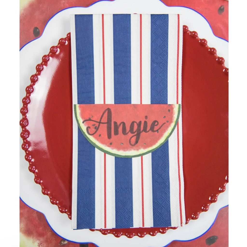 A lovely addition to any table setting or party, these elegant navy & red striped napkins are the perfect addition to any gathering!.
