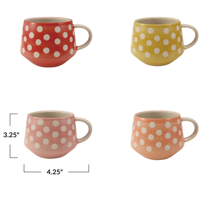4-1/4" Round x 3-1/4"H 14 oz. Hand-Painted Stoneware Mug w/ Wax Relief Dots, 4 Colors