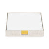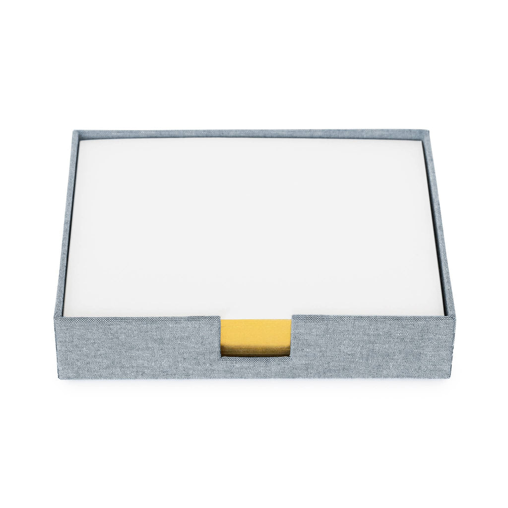 The Sugar Paper Desk Jotter allows you to write notes on the go. Gold foil edged blank note cards are kept tidy in a chambray fabric holder to jot down a note whenever you need to.