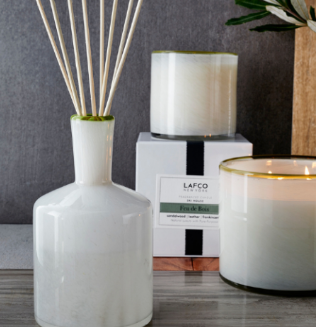 The mesmerizing light of the flames and rhythmic crackling of the blaze create a warm ambience. Fresh pine falls on curls of sandalwood and rare Virginia cedarwood. Smoky leather accords, frankincense, and nuances of vanilla are tranquil and comforting.