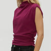 Amara Mock Neck Power Shoulder Top in Ruby