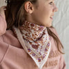 A large, colourful, hand-printed square on a soft fabric with a peach-skin feel that wraps around your neck for a bohemian look, perfect for any season! We love the brightly-coloured floral and bohemian motif, which will add a unique style to your outfits.