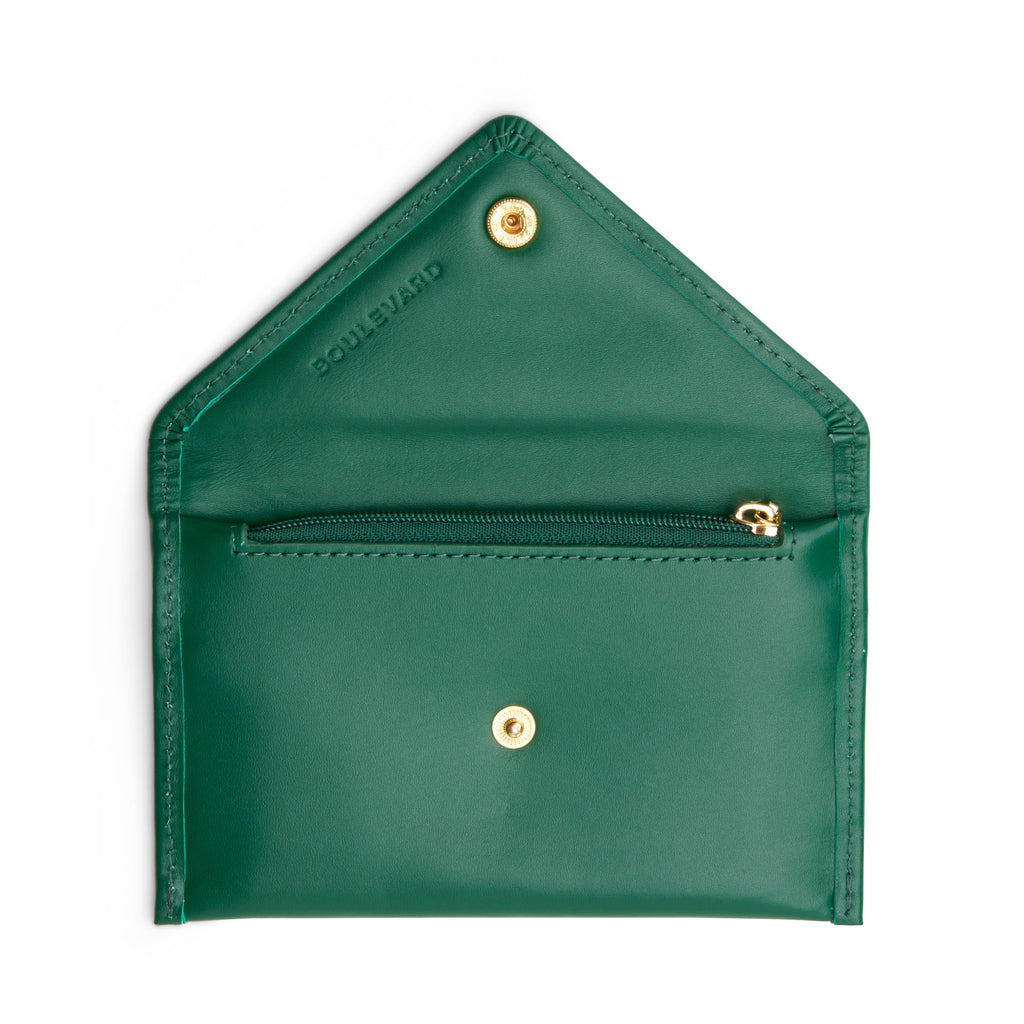 PERSONALIZATION: Comes in gold, stacked letters. Requires 2 letters. No Symbols. English characters only. [STACKED] A stylish envelope style compact wallet that holds the essentials. Inside is a zipper closure compartment that can accommodate change and essential cards as well as a clear pocket to securely display your ID. Features Italian full grain leather Snap-flap closure Interior clear ID window Interior zip pocket Gold-tone metal hardware Lined Product Care Spot clean leather by brushing softly. Please avoid contact with dyed fabrics and printed materials to prevent color transfer to leather, and please do not dry clean